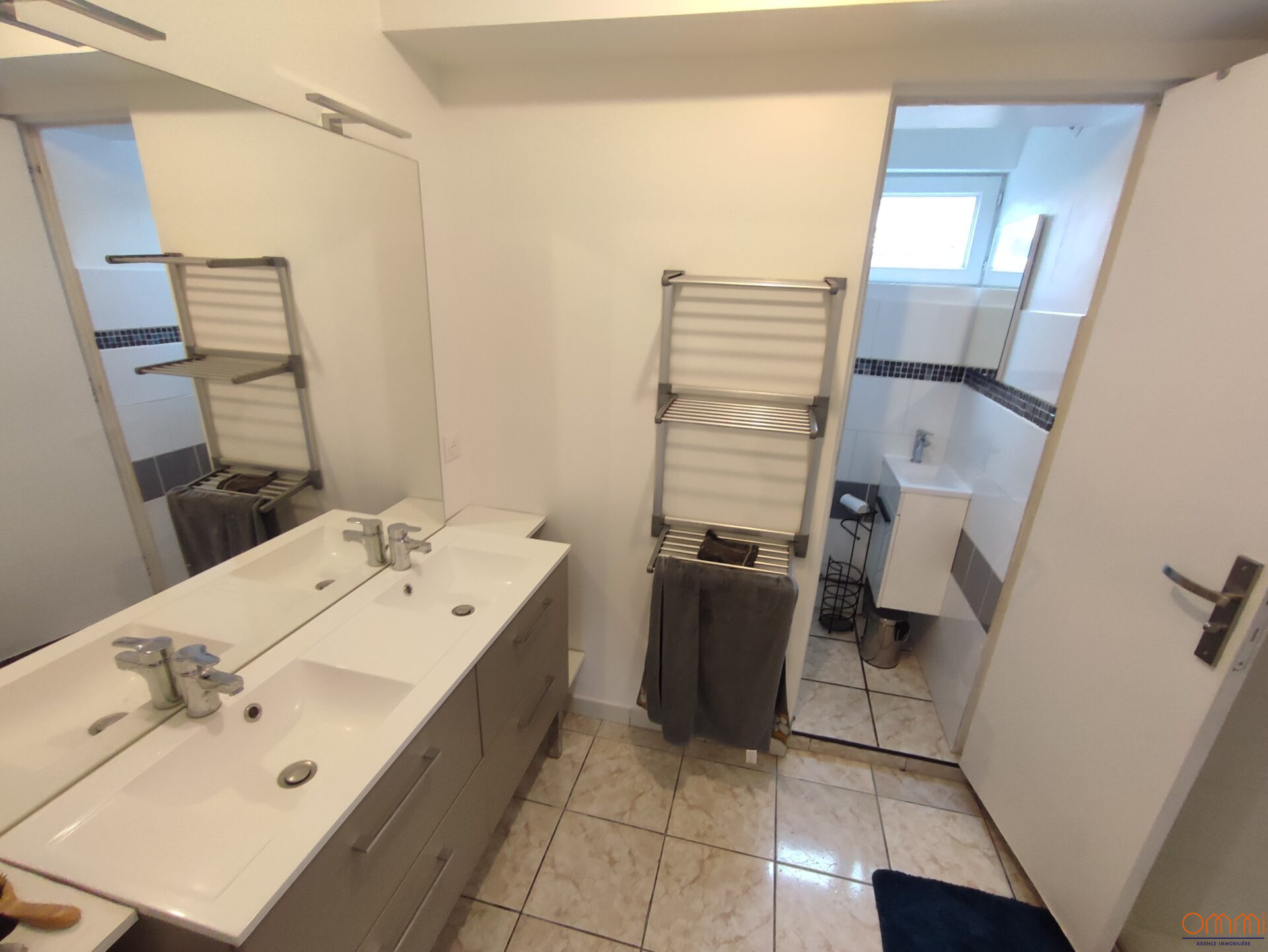 – Au premier: 3 chambres entièrement rénovées et meublées (lit avec tiroir, matelas, armoire dressing, étagères, bureau, siège de bureau, table de chevet, lampes), une salle d’eau avec double vasque, douche a l’italienne et WC .